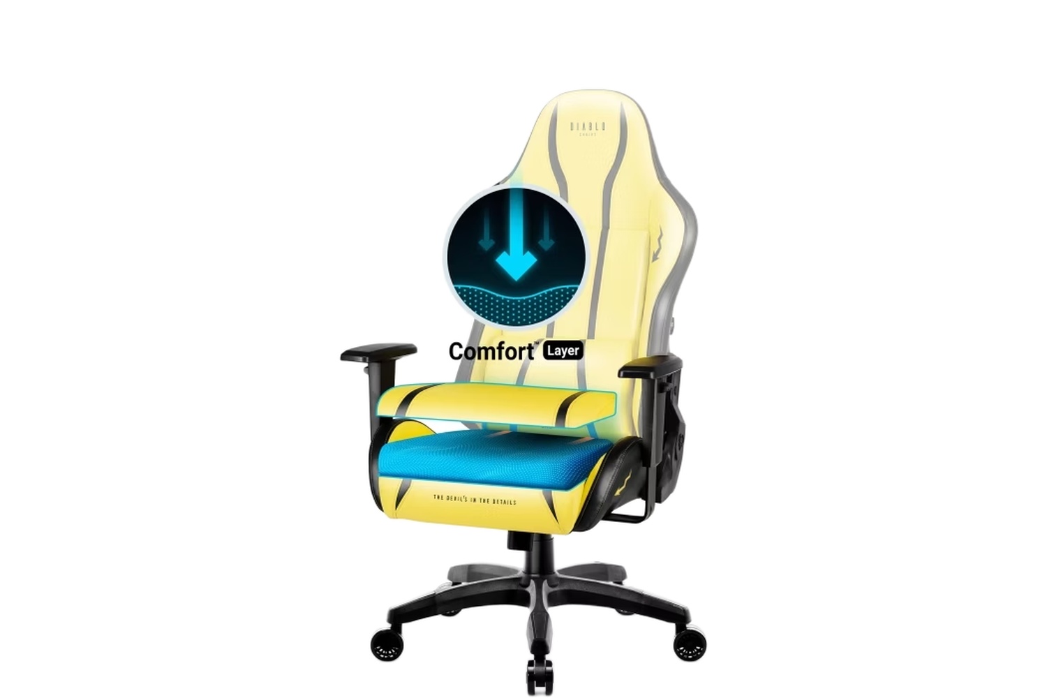 Žaidimų kėdė Diablo X-One 2.0 Normal dydis, eko oda, geltona/juoda